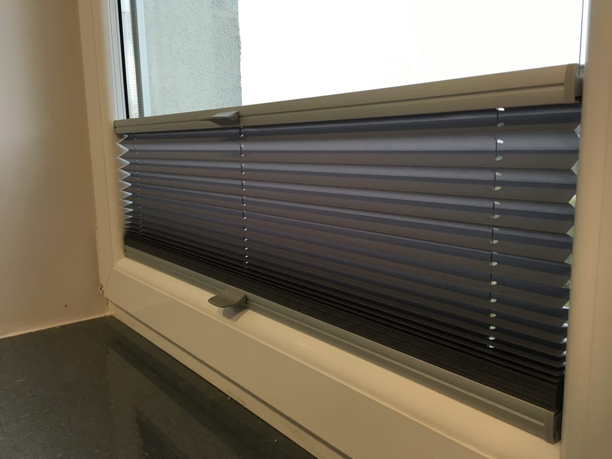 Plisy Cosimo srebrne z szarym materiałem. Idealnie komponują się z większymi oknami. Możliwość sterowania góra/dół.